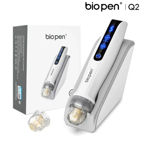 - Bio Pen Q2 is a 4-in-1 microneedling device combining MTS, EMS electroporation, and LED therapy. It firms, brightens, and rejuvenates the skin for visible anti-aging results.